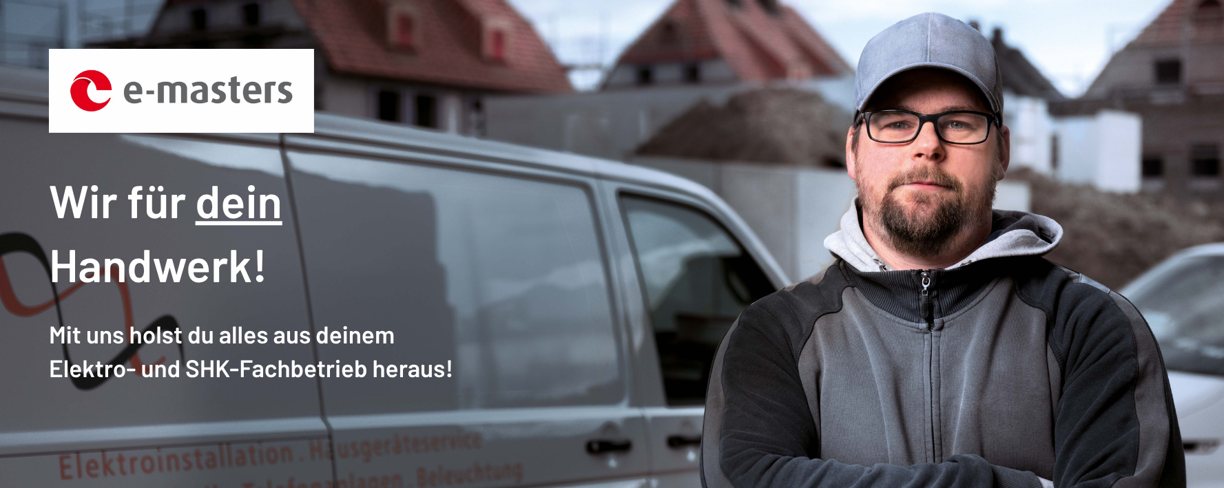 e‑masters ist die star­ke Gemein­schaft mit über 4.000 Hand­werks­be­trie­ben in Deutsch­land, Öster­reich und Luxem­burg. Wir bün­deln unse­re